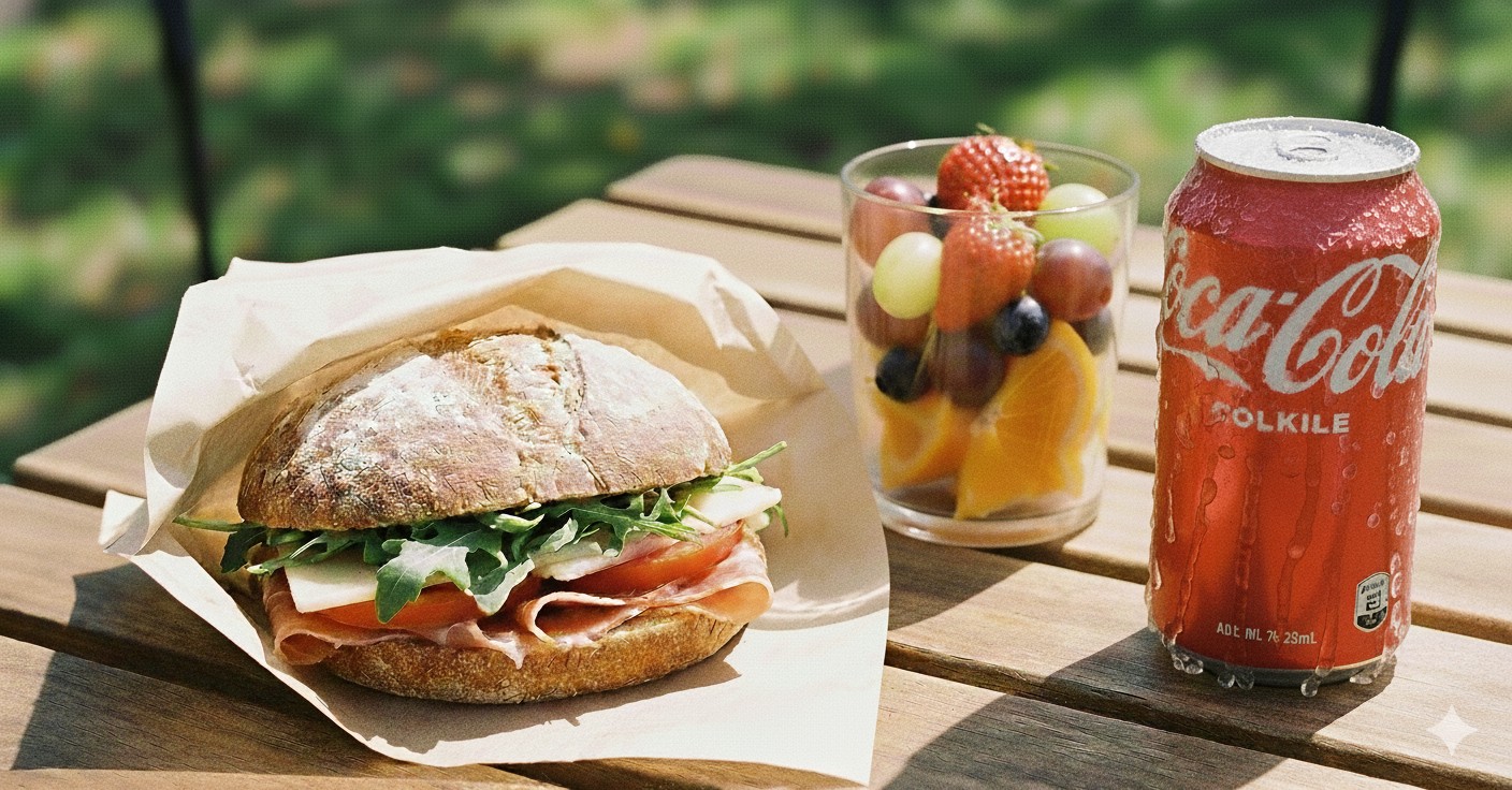 Sandwish premium, vaso de frutas y bebida lata o agua: $7.000 el día